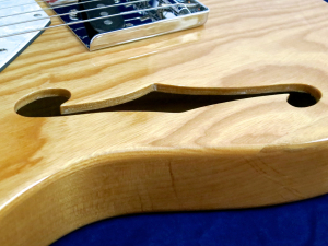 Roger Rossmeisl – known for his classic Rickenbacker designs – hit upon the concept of the Thinline Telecaster in the late 1960s when working for Fender. The original version was made with a body which featured three large pockets routed out from the back. A separate, glued-on solid piece of wood served as the body’s back.