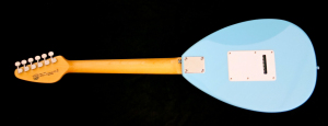 The Teardrop is build from a basswood body and a bolt on maple neck. The fretboard is crafted from rosewood.